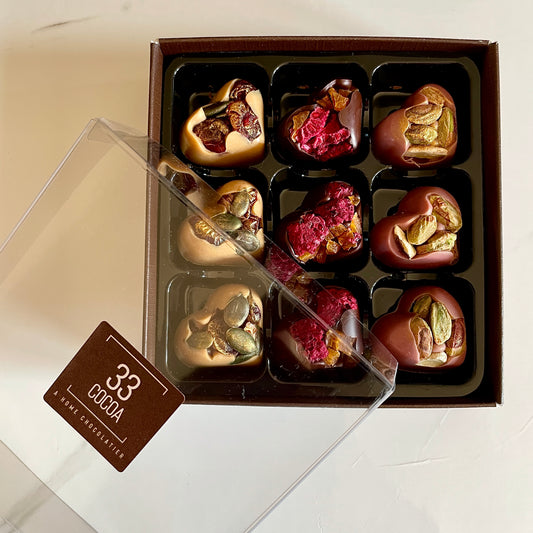 Quality is at the core of everything we do at 33Cocoa. We hand-select the finest, ethically-produced ingredients to create chocolates that are pure, fresh, and delicious. From responsibly sourced cocoa beans to local fruits, nuts, and spices, we ensure that each ingredient meets our high standards. Taste the difference that comes from true craftsmanship and the finest ingredients.