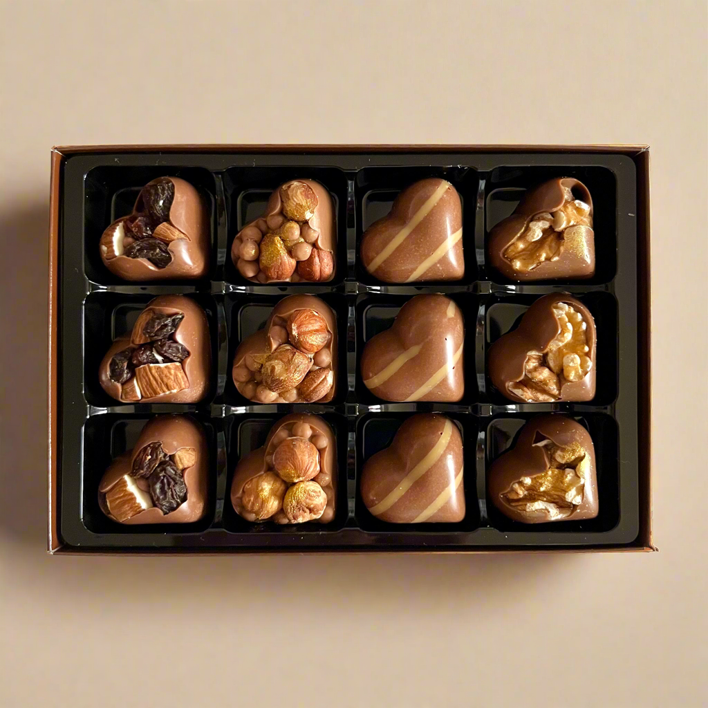 Surprise your loved one with the rich, indulgent taste of luxury Belgian milk chocolate, handcrafted by an artisan home chocolatier. This beautifully curated box features 12 decadent chocolates in four irresistible flavours. This is more than just chocolate — it’s a heartfelt experience.